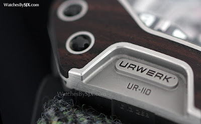 Ebenholz gehört zu den härtesten Holzarten der Welt, fast dreimal härter als Teak. Die Bearbeitung der Frontplatten des UR-110 Eastwood trug die Bohrer so schnell wie die Bearbeitung von Stahl, so der Urwerk-Mitbegründer Felix Baumgartner.