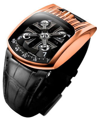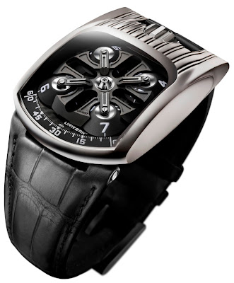 Die Schweizer Luxusuhrenmarke URWERK präsentiert ihre neuesten UR103T-Kreationen in Rotgold und Graugold. Die Originalität des UR103T ist auf den ersten Blick offensichtlich: Vier gut sichtbare rotierende Satelliten, die die Stunden tragen, gleiten am Minutentakt vorbei. Dabei wird die Zeit gleichzeitig sowohl digital (Stunden) als auch analog (Minuten) angezeigt.